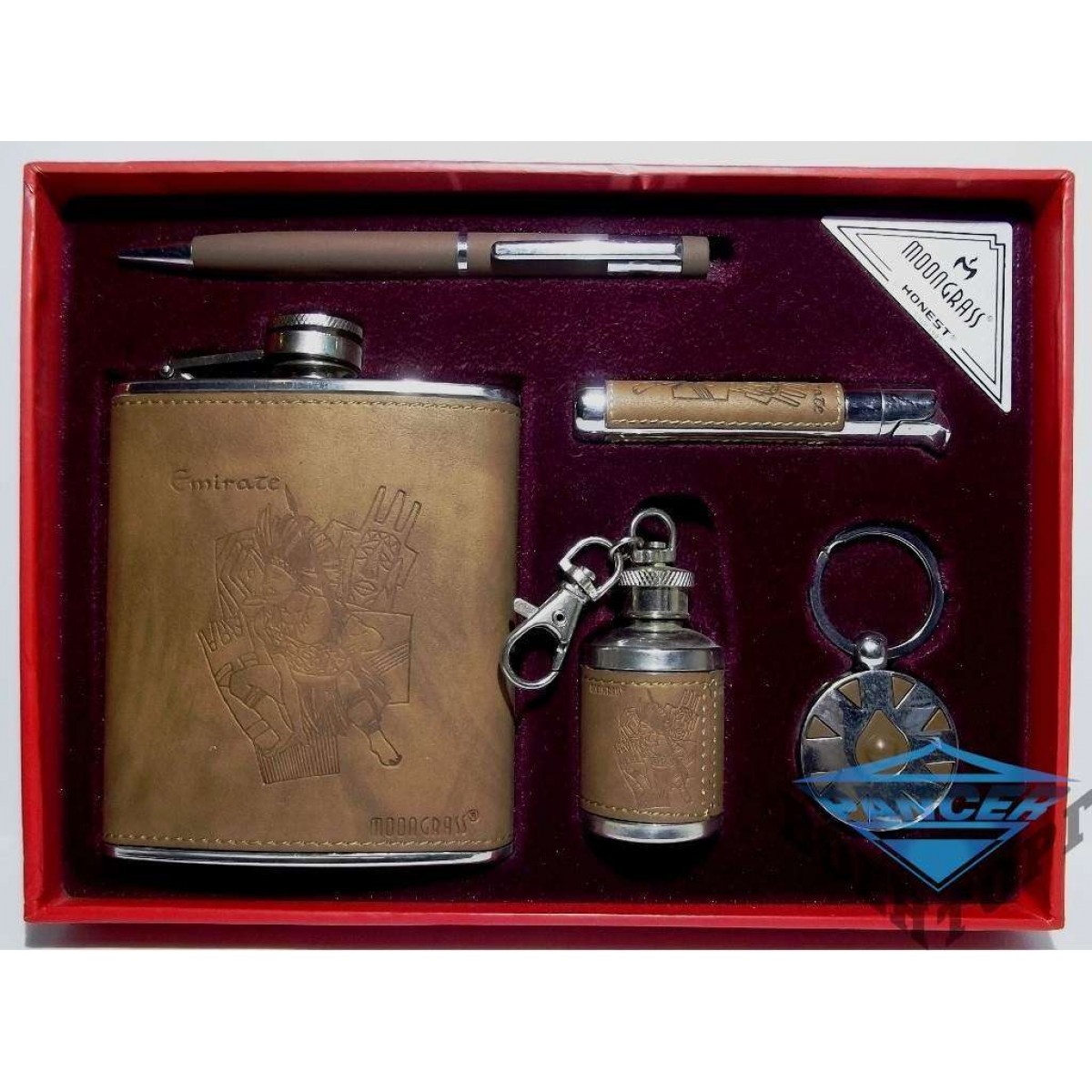 Набір: фляга + ручка + запальничка + брелок/ліхтарик + міні фляга у вигляді брелока.