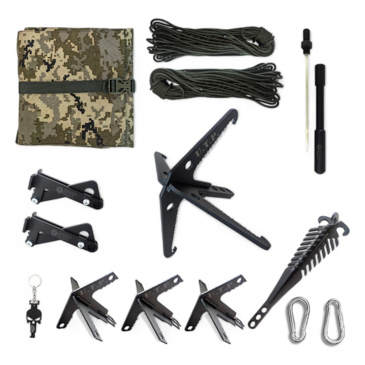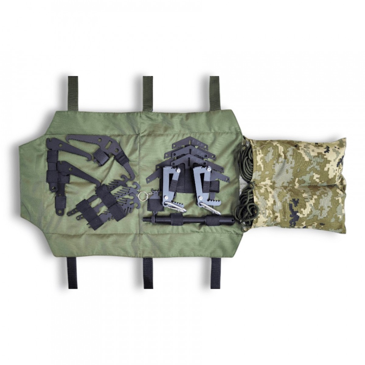 • Зручна сумка — Всі інструменти комплектуються у зручну сумку, яку можна використовувати як подушку завдяки формі та мотузці всередині. Сумка забезпечує компактне та організоване зберігання всіх компонентів набору.