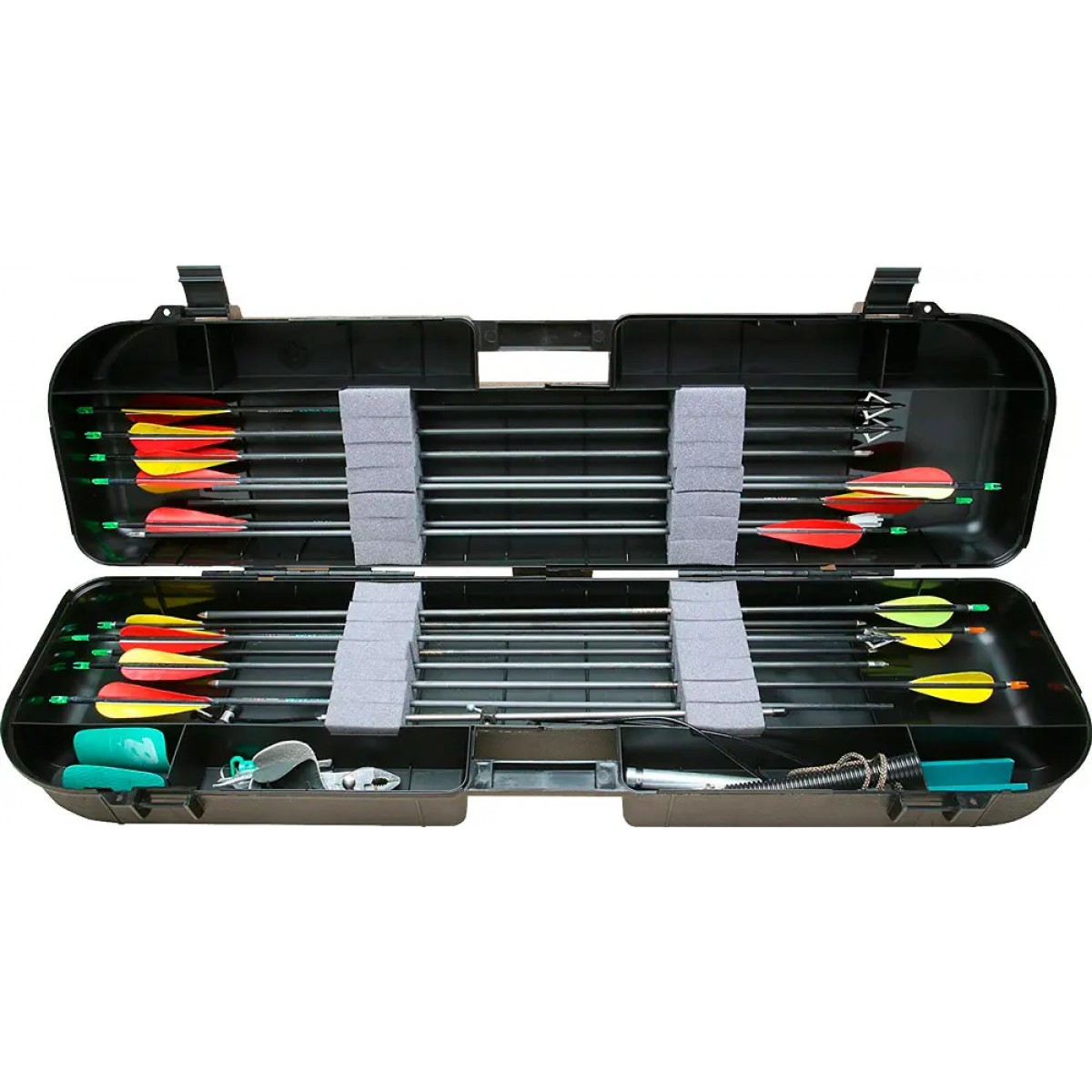 Кейс MTM Arrow Plus Case розрахований на зберігання 36 стріл. Також є невеликі відсіки для дрібних комплектуючих і аксесуарів. Кейс виготовлений з ударостійкого пластику і оснащений зручною ручкою для перенесення. Розміри - 91,5х26х13 см.