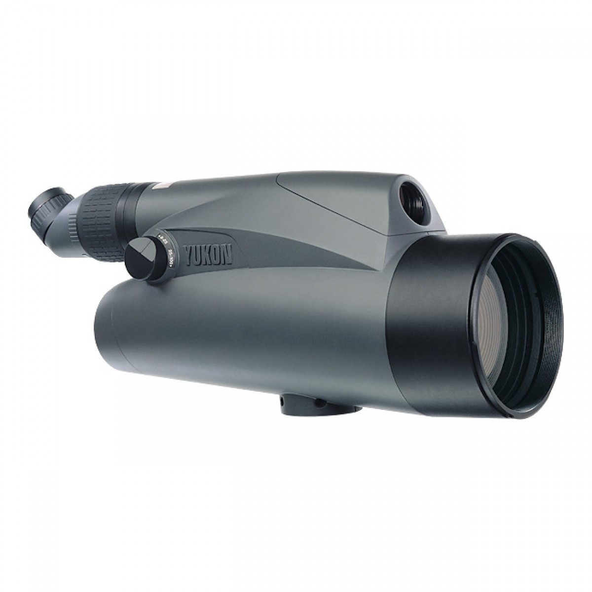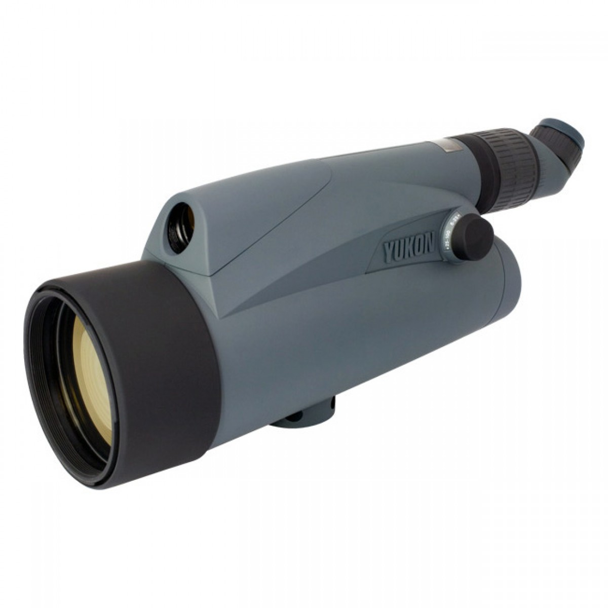 Yukon 6-100x100 - унікальна для українського ринку підзорна труба з двома оптичними каналами і дзеркально-линзовой оптичною системою. Небувалий діапазон кратності - від 6х до 100х - забезпечується за допомогою двох (!) Об'єктивів різного діаметру. Основний об'єктив з апертурою 100мм і фокусною відстанню 600 мм можна застосовувати для спостережень на кратностях 25х-100х. Менший, з параметрами 25 мм / 150 мм, призначений для роботи на збільшеннях 6х-25х і може використовуватися як видошукач. Перемикання між «вузьким» і «широким» каналами здійснюється простим поворотом перемикача.