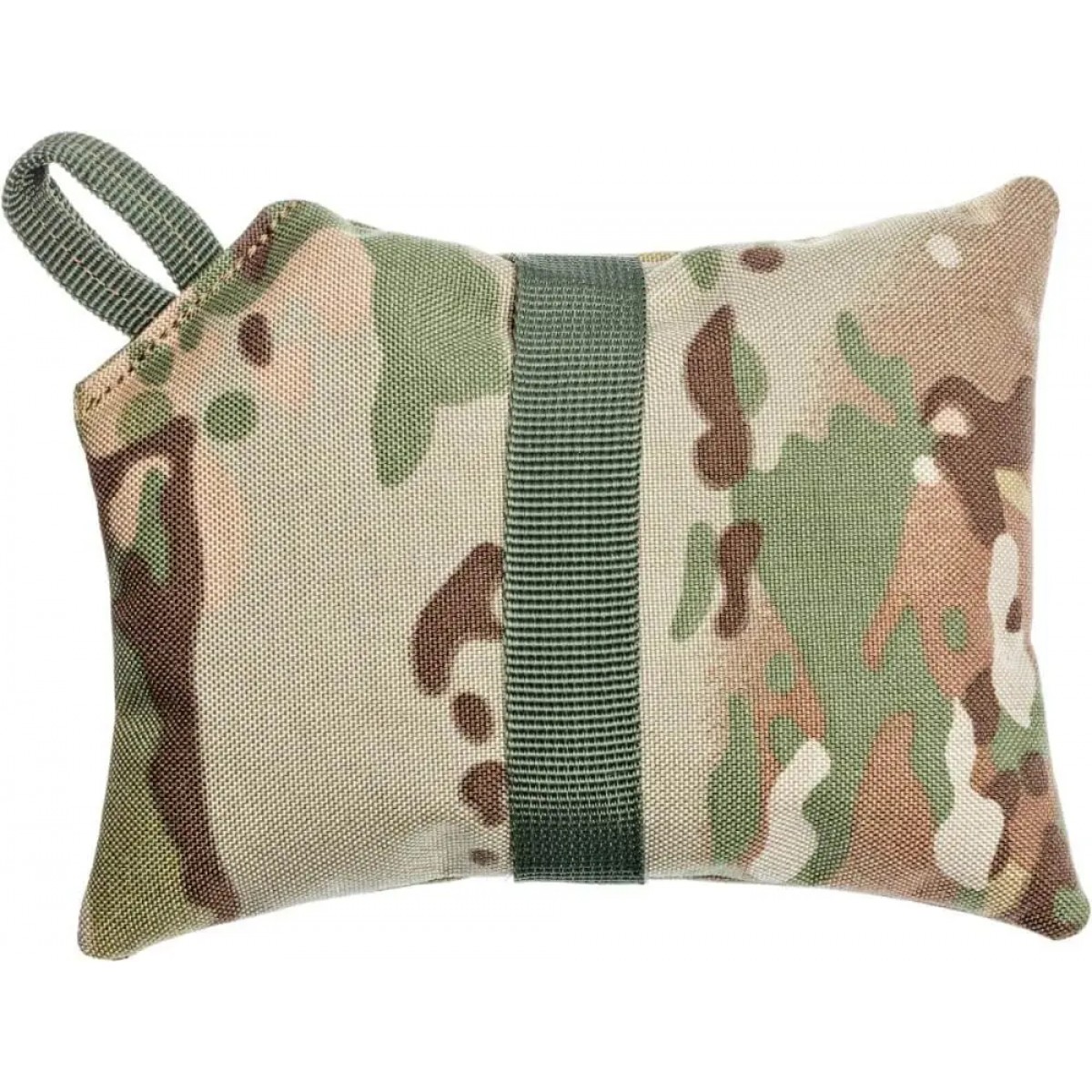 Мешок пошит из кордуры, а в качестве наполнителя используются пластиковые гранулы. Используется при высокоточной стрельбе для фиксации приклада в определенном положении.