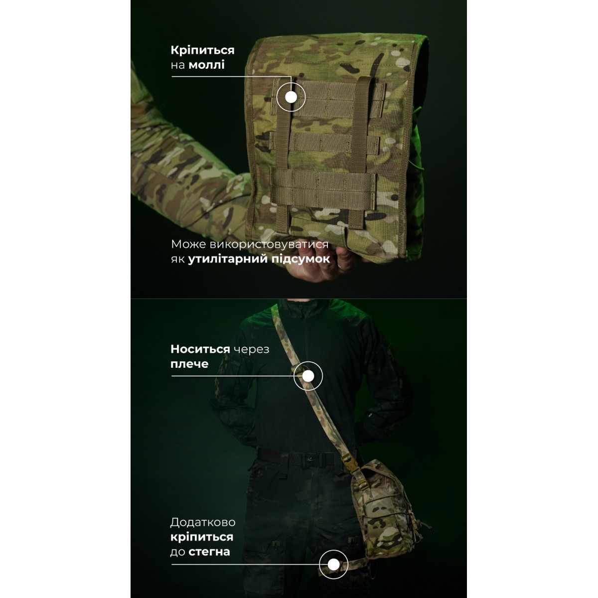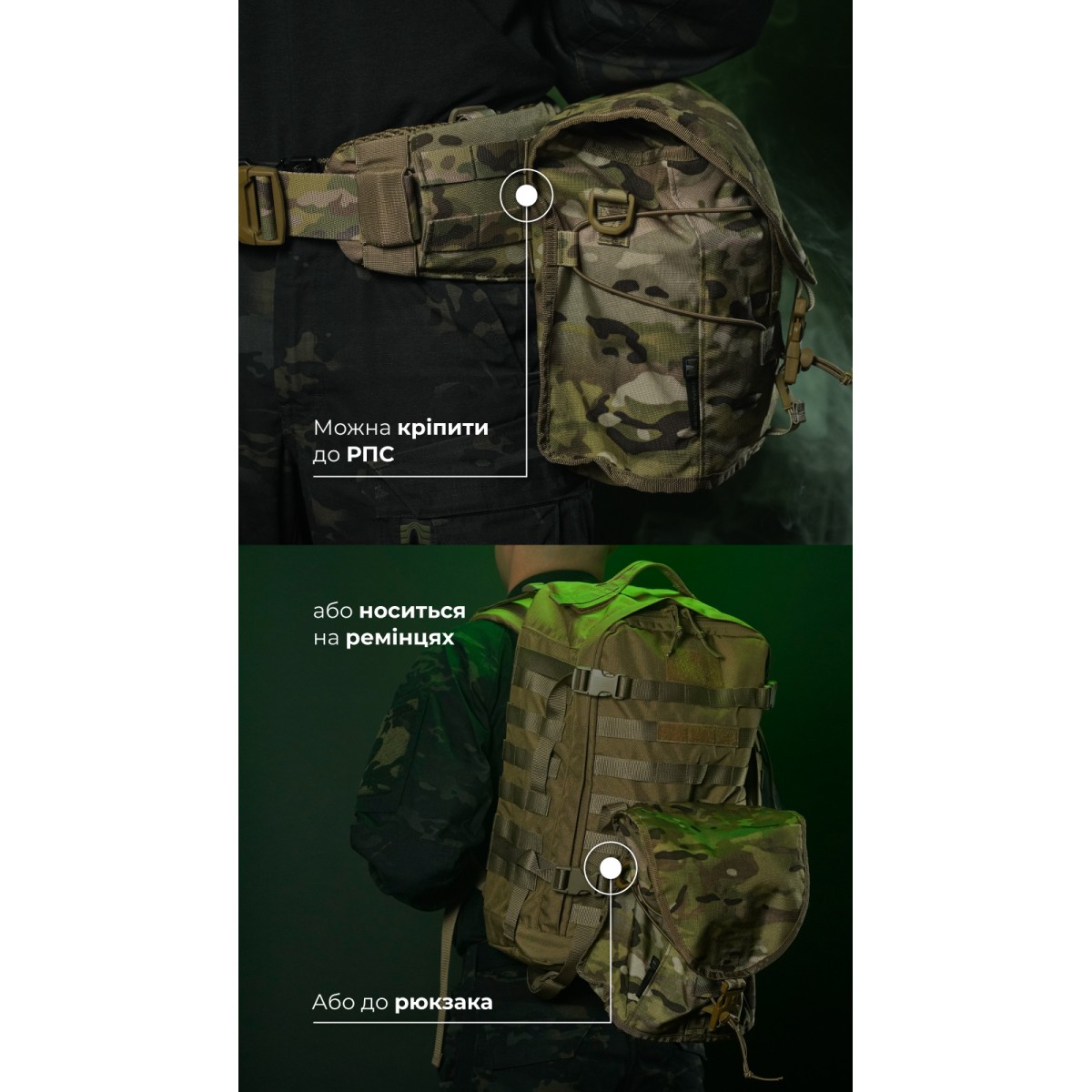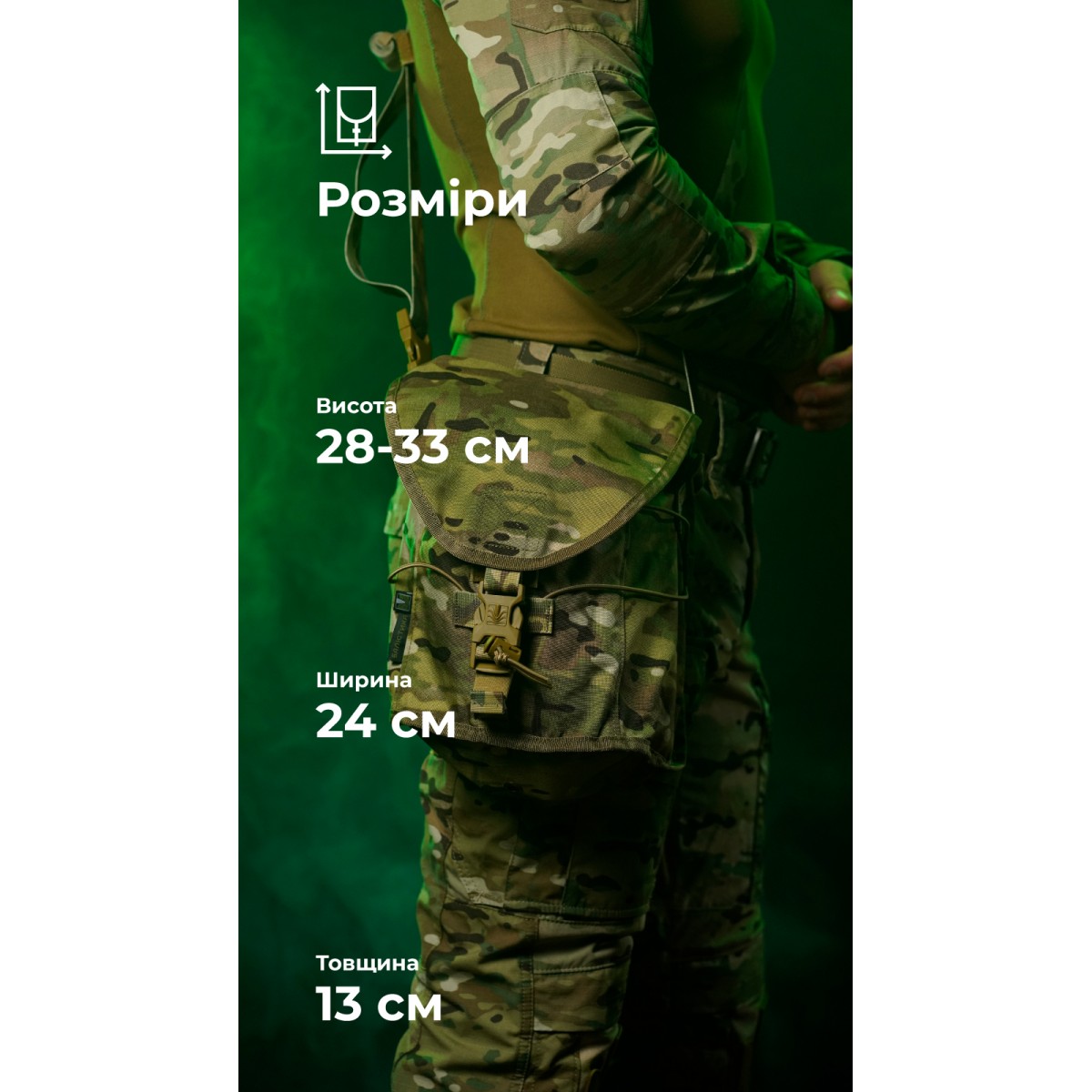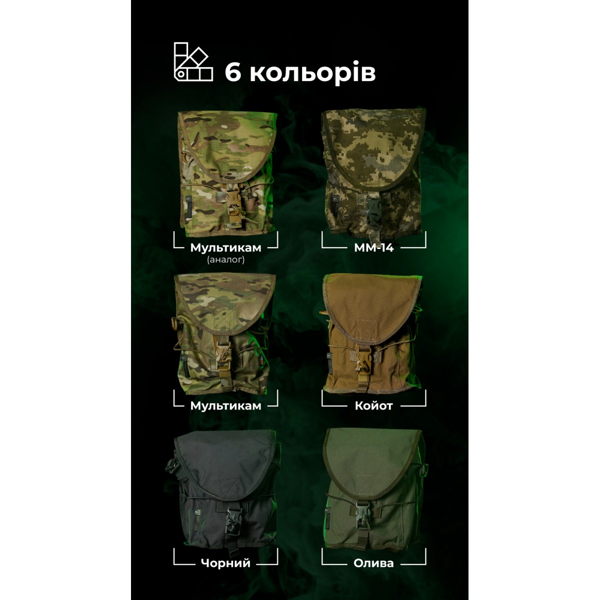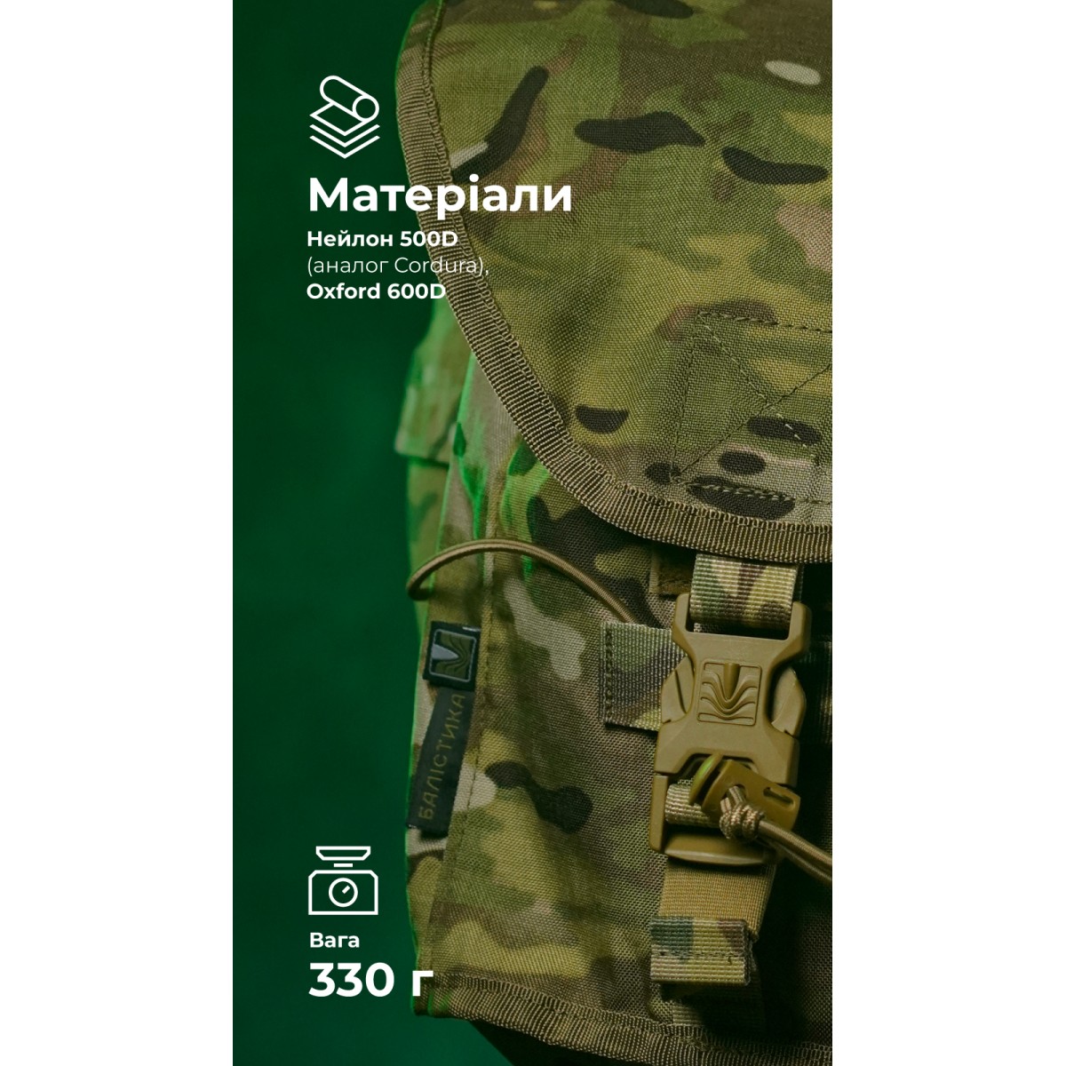 Легкий и крепкий подсумок для переноса противогаза и дополнительного фильтра. Совместим с противогазами СМ-6, ГП-9, СМ-2020 и другими похожими образцами. Может крепиться как подсумок или как сумка через плечо с дополнительной фиксацией к бедру. ✅ Ключевые преимущества Вмещает противогаз с установленным фильтром и еще одним запасным Может использоваться как утилитарный подсумок Крепится на молли или надевается через плечо Фиксируется ремешком к бедру, чтобы не болтаться во время движения Стягивается шоккордом для компактности Клапан регулируется под содержимое Два регулируемых ремня в комплекте Отверстие на дне для выхода влаги и мусора Выносливые материалы – нейлон 500D (аналог Cordura), Oxford 600D Надежная фурнитура – WJ (Южная Корея), АММ (Украина) Описание товара Подсумок состоит из единственного отделения, которое закрывается клапаном с фастексом и велкро. В комплект также входят два съемных регулируемых ремешка (100 и 210 см) с фастексами и двухщелевыми пряжками. Объем подсумка можно настроить благодаря регулировке клапана. Для этого липучку следует зафиксировать на нужном уровне и затянуть или ослабить стропу на фастексе. Подсумок можно закрепить на снаряжении на систему MOLLE. Он займет ширину 6 ячеек на вашей плитоноске/бронежилете, РПС или рюкзаке. Благодаря длинному ремешку его также можно носить через плечо. К боковинам пришиты D-кольца, к которым и можно прицепить длинный ремешок. Для этого двухщелевую пряжку на ремешке следует протянуть через D-кольцо. Снизу на задней стенке пришит туннель, сквозь который протягивается короткий ремешок для закрепления на бедре. Благодаря этому подсумок не болтается со стороны в сторону во время движения. Через фасад прошнурован шоккорд, которым можно стянуть пустой подсумок. В дне вырезано отверстие с металлическим люверсом, через которое выходит мелкий мусор, песок, влага. ❓ Часто задаваемые вопросы В этом подсумке можно переносить только противогаз? Нет, не только. В него можно положить сухой паек, гранаты, патроны насыпью и т. п. Регулируется ли длина ремешков? Да, при помощи двухщелевых пряжек длину ремешков можно настроить в соответствии с телосложением и объемом снаряжения на бойце. На более коротком ремешке дополнительно вшита эластичная стропа, которая обеспечивает плотное, но комфортное прилегание к ноге без давления. Свободные концы можно свернуть и закрепить велкро-хлястиком. Нужно ли снимать фильтр перед хранением в подсумке? Нет, нет нужды. В подсумке достаточно места, чтобы хранить противогаз сразу с установленным фильтром. Поэтому не придется тратить время на его присоединение прямо на позиции.Отзывы о Подсумок под противогаз "Ветровик" (Мультикам неоригинальный) ТМ Баллистика