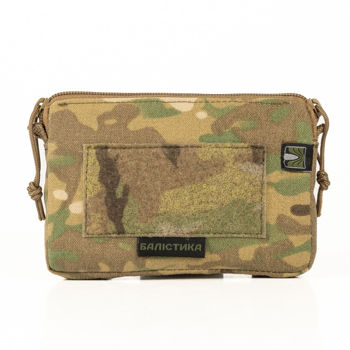 Поясной подсумок под документы от компании «Баллистика» – универсальное решение для тех, кому нужен быстрый доступ к документам, удостоверению, банковским картам или небольшому телефону. Особенности товара Компактный горизонтальный подсумок отличается такими качествами: Имеет одно отделение, в котором поместится несколько самых необходимых вещей. Выполнен из плотной износостойкой ткани с водоотталкивающим слоем, который защитит содержимое от влаги и грязи. Молния открывает подсумок сверху, имеет два бегунка с паракордовыми пулерами, и ее удобно открывать с любой стороны. Ограничители из стропы на концах молнии не позволят бегункам выскочить. Закрепить подсумок можно на систему MOLLE или на ремень, продев его через стропы. В зависимости от партии на передней части может быть нашита велкро-панель (10×5 см), на которую можно зафиксировать идентификаторы. Технические характеристики Внешний материал: Cordura 1000D. Внутренний материал: Cordura 500D. Стропы: полиамид, 2; 2,5 см. Липучка: Velcro. Размер: 15×11×2 см. Вес: 70 г.Отзывы о Подсумок поясной для документов утилитарный (Мультикам неоригинальный)