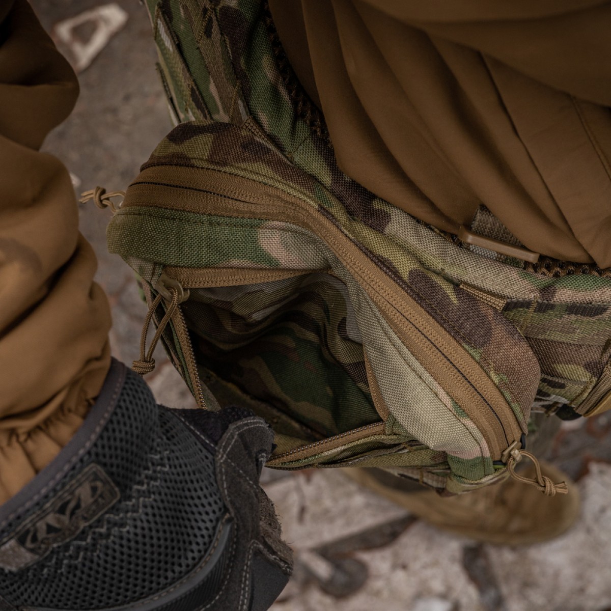 Вместительный и выносливый подсумок подходит для организованного хранения мелкого снаряжения, инвентаря, боеприпасов, провизии ✅ Ключевые преимущества Объем 1,8 л Основное отделение + фронтальный карман на молнии Влагоотталкивающая пропитка Крепление на 4 стропы молли 3 ряда ячеек молли на фасаде Ширина фасада – 4 функциональных ячейки Прочные материалы: Cordura 500D, Oxford 600D Качественные молнии YKK Описание товара Благодаря максимально простой конструкции подсумок облегчает доступ к содержимому. А выносливые материалы, надежные швы и фурнитура обеспечивают устойчивость к износу и повреждениям. Подсумок состоит из одного основного отделения и переднего кармана (19×16 см). Крепится к снаряжению на 4 стропы молли, занимает ширину в 5 ячеек. На фронтальной части расположены 3 ряда ячеек молли шириной в 4 ячейки, которые позволяют шнуровать другие подсумки и дополнительный инвентарь. Верхняя молния имеет два бегунка, которые позволяют расстегивать ее на одну или другую сторону. Она оснащена ограничителями из ПВХ, которые частично повторяют логотип компании «Баллистика». Материалы с водоотталкивающей пропиткой обеспечивают базовую защиту содержимого от дождя. Внутренние швы обработаны тесьмой для большей выносливости. ❓ Часто задаваемые вопросы Какой объем имеет подсумок и что туда вмещается? Подсумок объемом 1,8 л вместит боекомплект россыпью. Также в нем можно хранить перчатки, блокнот, карту или сухпай. Держит ли форму, когда пустой? Нет, подсумок выполнен из гибких тканей, без жестких вставок или демпферов, поэтому легко сворачивается и не занимает много места среди вещей. Обязательно ли шнуровать подсумок на снаряжение, чтобы эффективно его использовать? Нет, не обязательно. Вы можете использовать его как сумку для негабаритных вещей, которая будет храниться в вашем рюкзаке или отдельно. Можно ли использовать подсумок для активного отдыха? Да, конечно. Изделие хорошо подойдет для активного отдыха. В нем можно разместить контейнеры для еды или дополнительное снаряжение, которое пригодится вам в путешествии.Основные характеристики Утилитарный подсумок УП1 “Запасник” (19×16×6 см | Горизонтальный | Мультикам) ТМ Баллистика