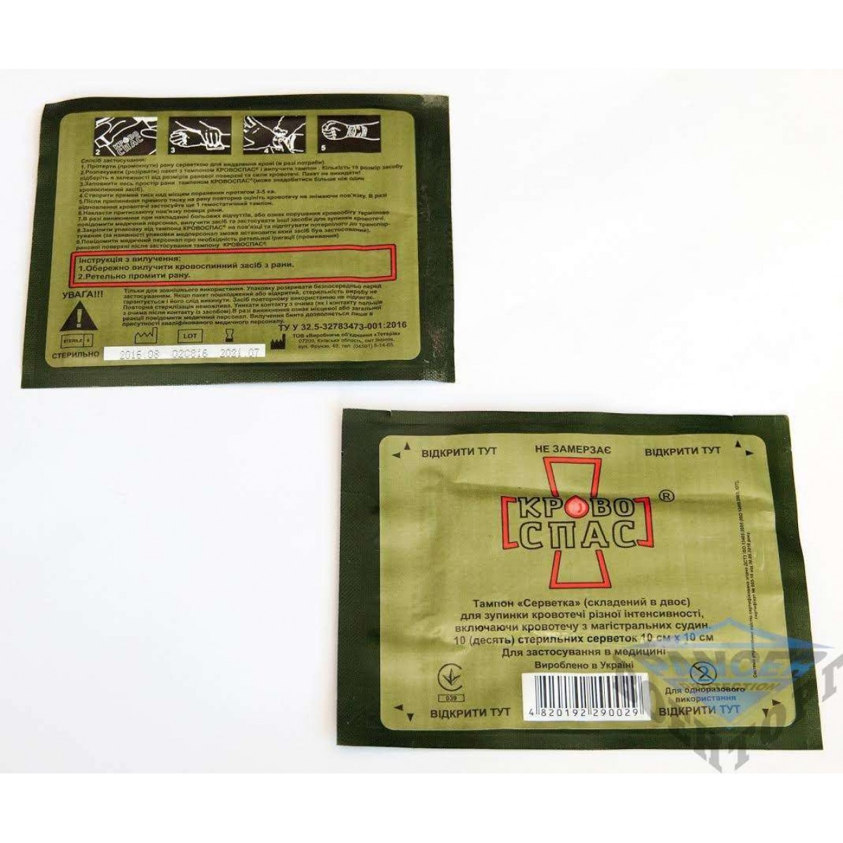 Салфетка КРОВОСПАС представляет собой небольшой (10х10см) отрез нетканого материала, пропитанный гемостатической композицией и идеально подходит для остановки кровотечений средней и высокой интенсивности при небольшой поверхности раны. Формирование кровяного сгустка начинается уже на 30-й/40-й секунде после тампонировния, а полная остановка кровотечения (в т.ч. артериального) происходит менее, чем за 3 минуты. Компоненты препарата не осыпаются с материала-носителя и не остаются на руках, что предотвращает их попадание на слизистые оболочки глаз и дыхательных путей.