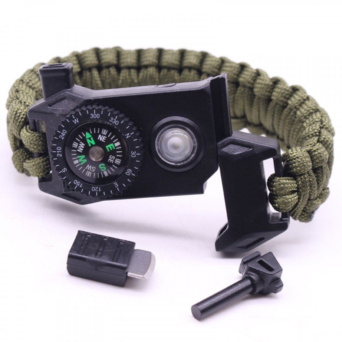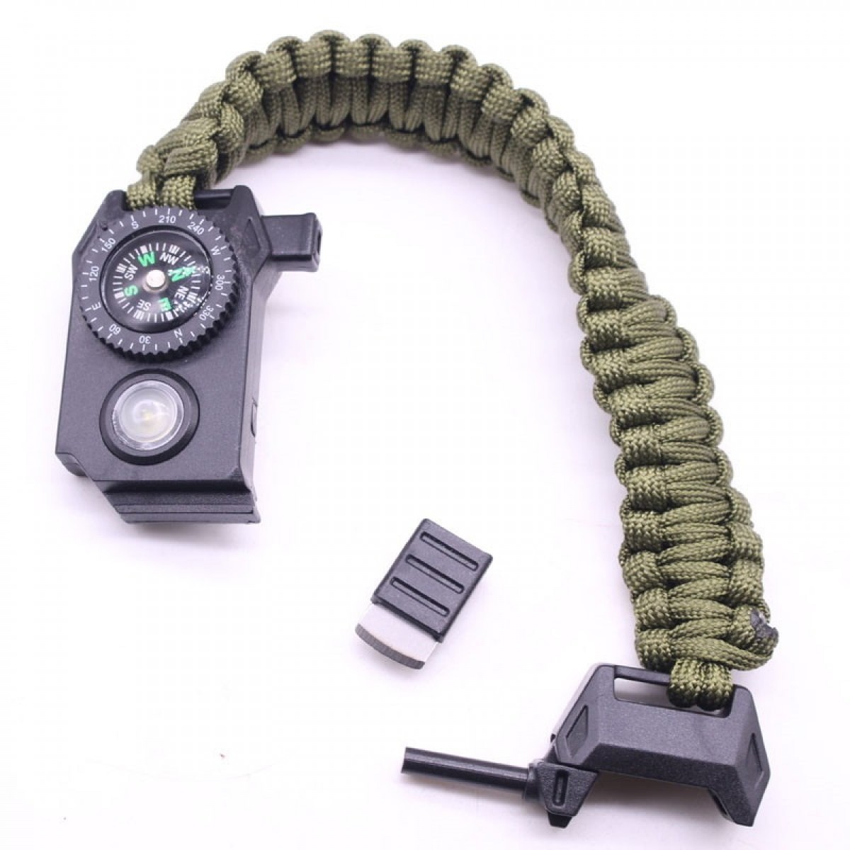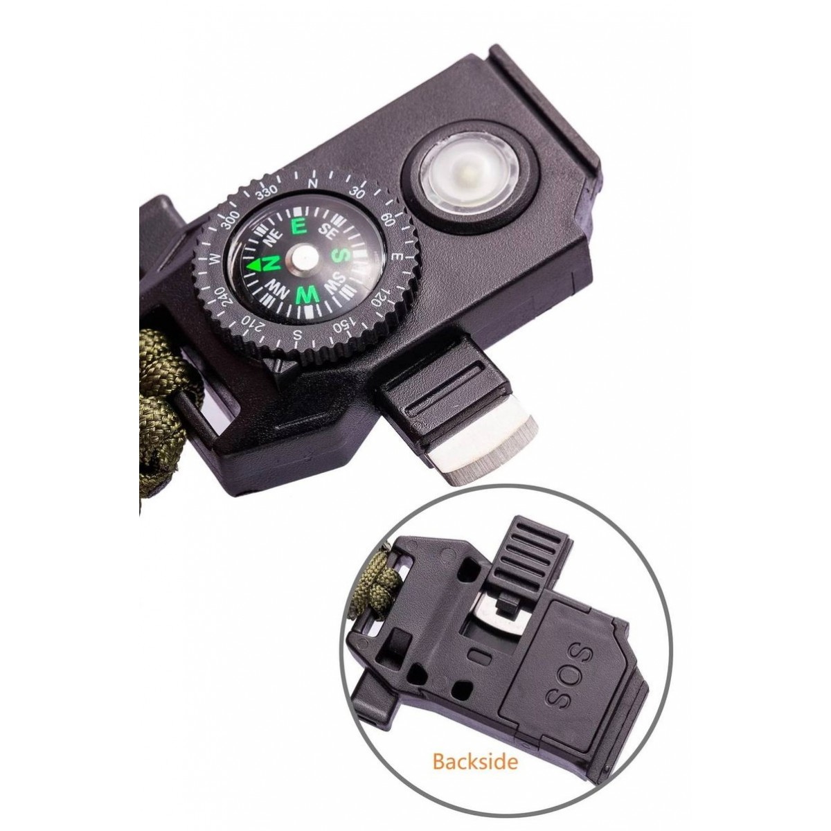- Функции Компас, фонарик, острая застежка, кремень для огня, свисток