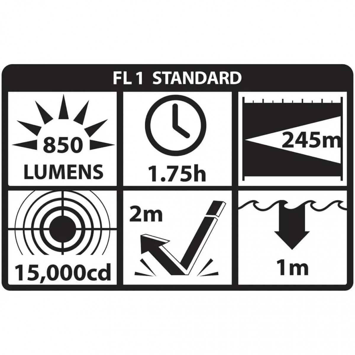 Основой комплекта является тактический металлический фонарь TWM-854XL мощностью 850 люмен. В сочетании с высокоэффективным глубоким параболическим отражателем луч TWM-854XL достигает 245 метров и идеально подходит для захвата целей на больших расстояниях. Конструкция фонаря дает четко сфокусированный луч для освещения на расстоянии.