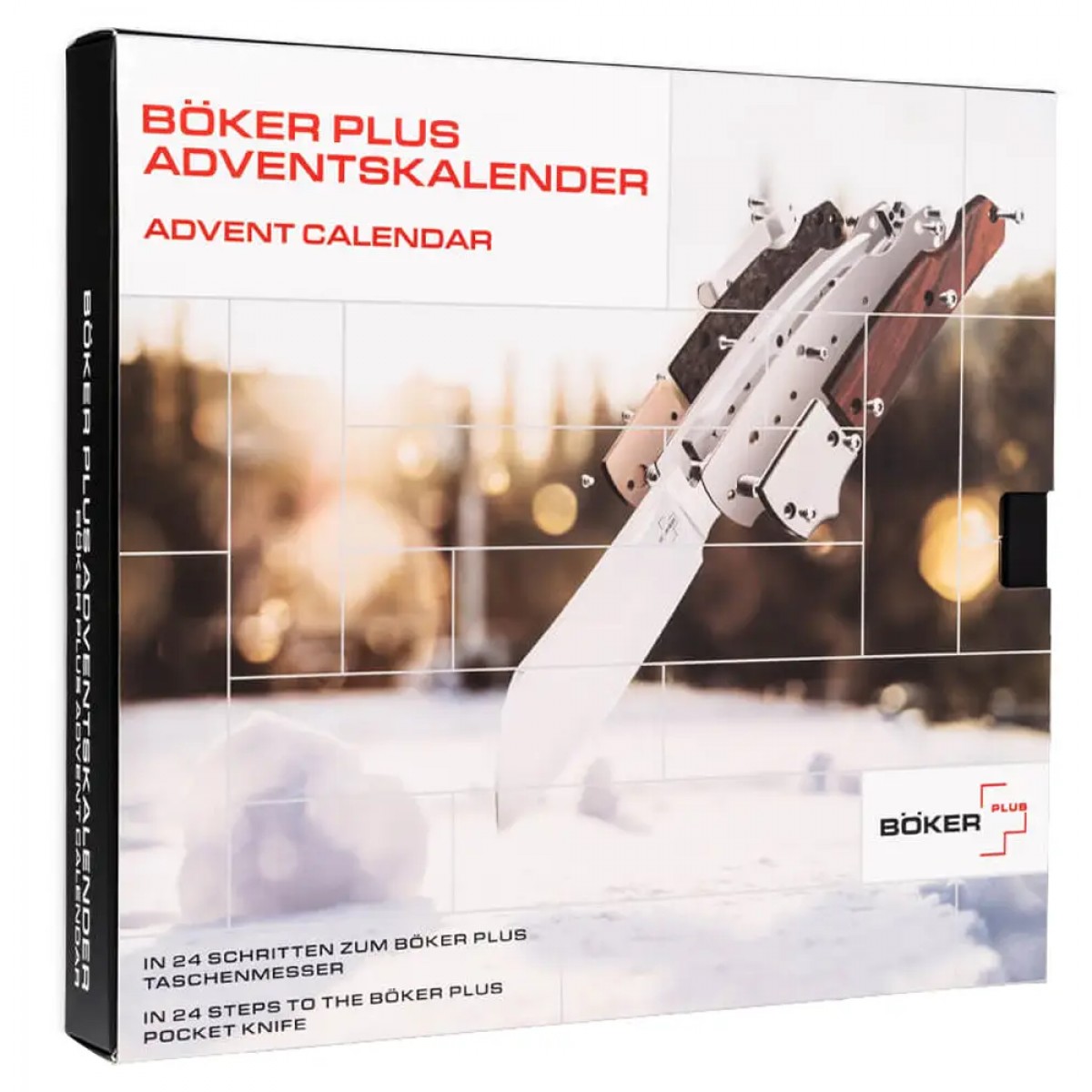 Сувенир Boker Advent Calendar — оригинальный и весьма популярный подарок для ножемана. Календарь представляет собой картонную коробку, в которой размещено 24 ячейки разных размеров с деталями ножа — от винтов до клинков и накладок на рукоять.
