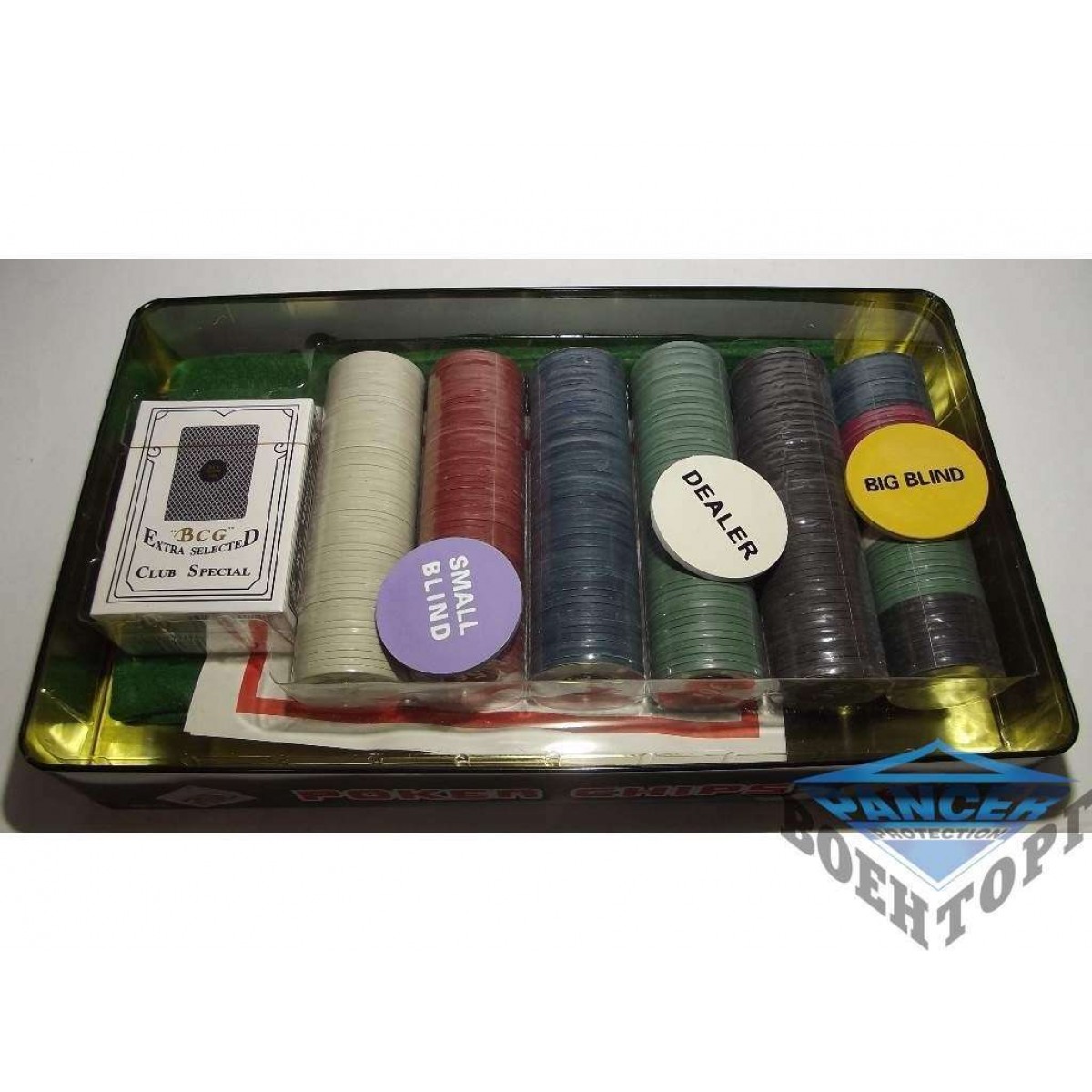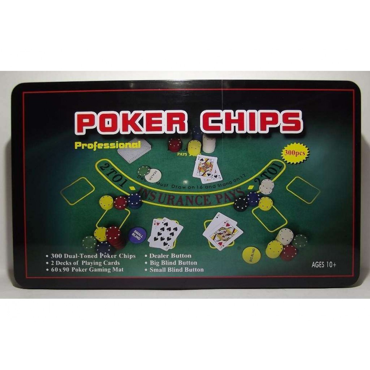 Набор для игры в покер в метал. упаковке (300 фишек+2 колоды карт+полотно)