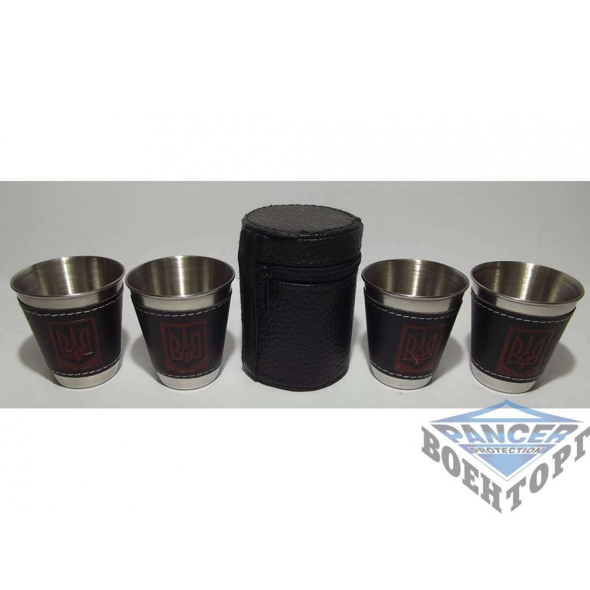 Стопки из нержавеющей стали 4 шт. (кожанный чёрный чехол) (средние)