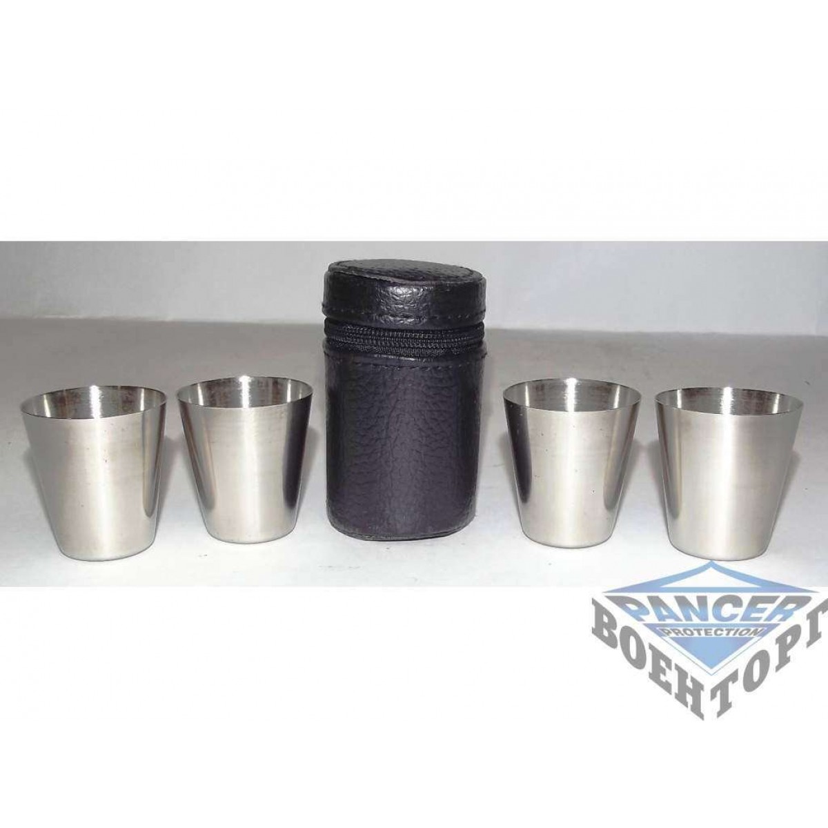 Стопки из нержавеющей стали 4 шт. (кожанный чёрный чехол).