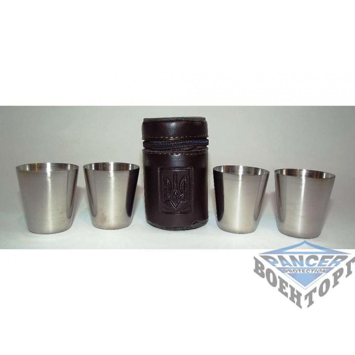 Стопки из нержавеющей стали 4 шт. (кожанный чёрный чехол) Объём: 50 мл.