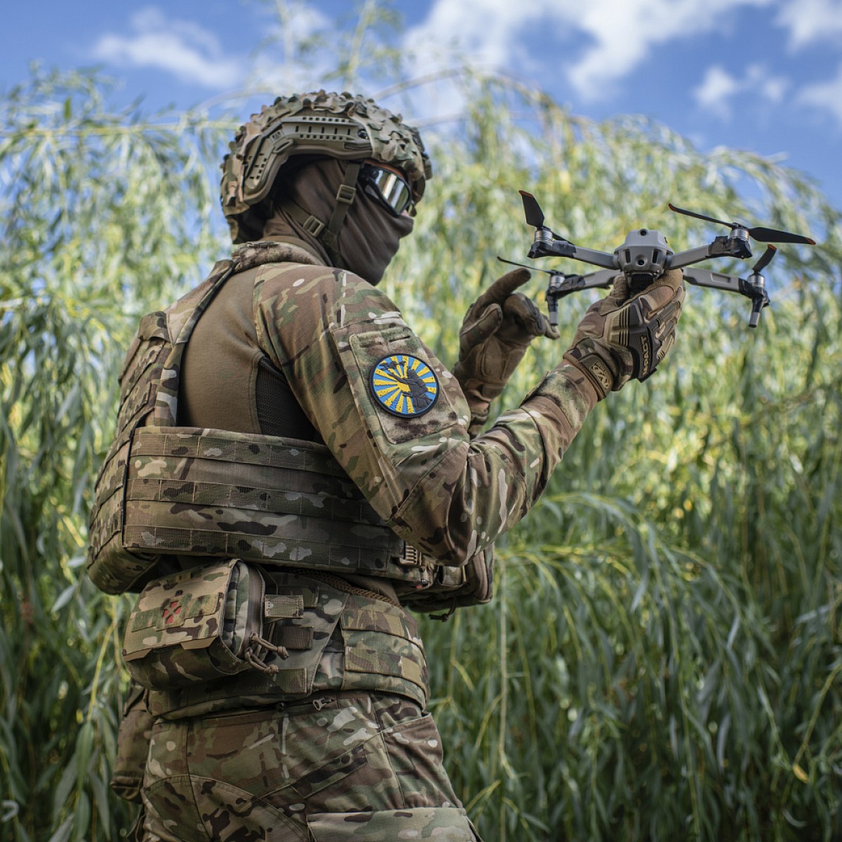 На патче изображен самурай, который мастерски управляет дроном на фоне стилизованного желто-голубого "солнечного флага", известного в Японии как Хиномару ("круг солнца" или "круг огня"). В стране восходящего солнца Хиномару является символом гордости, идентичности и национального единения. Он отражает значение солнца как источника света, тепла и жизни, а также символизирует мир, счастье и процветание.