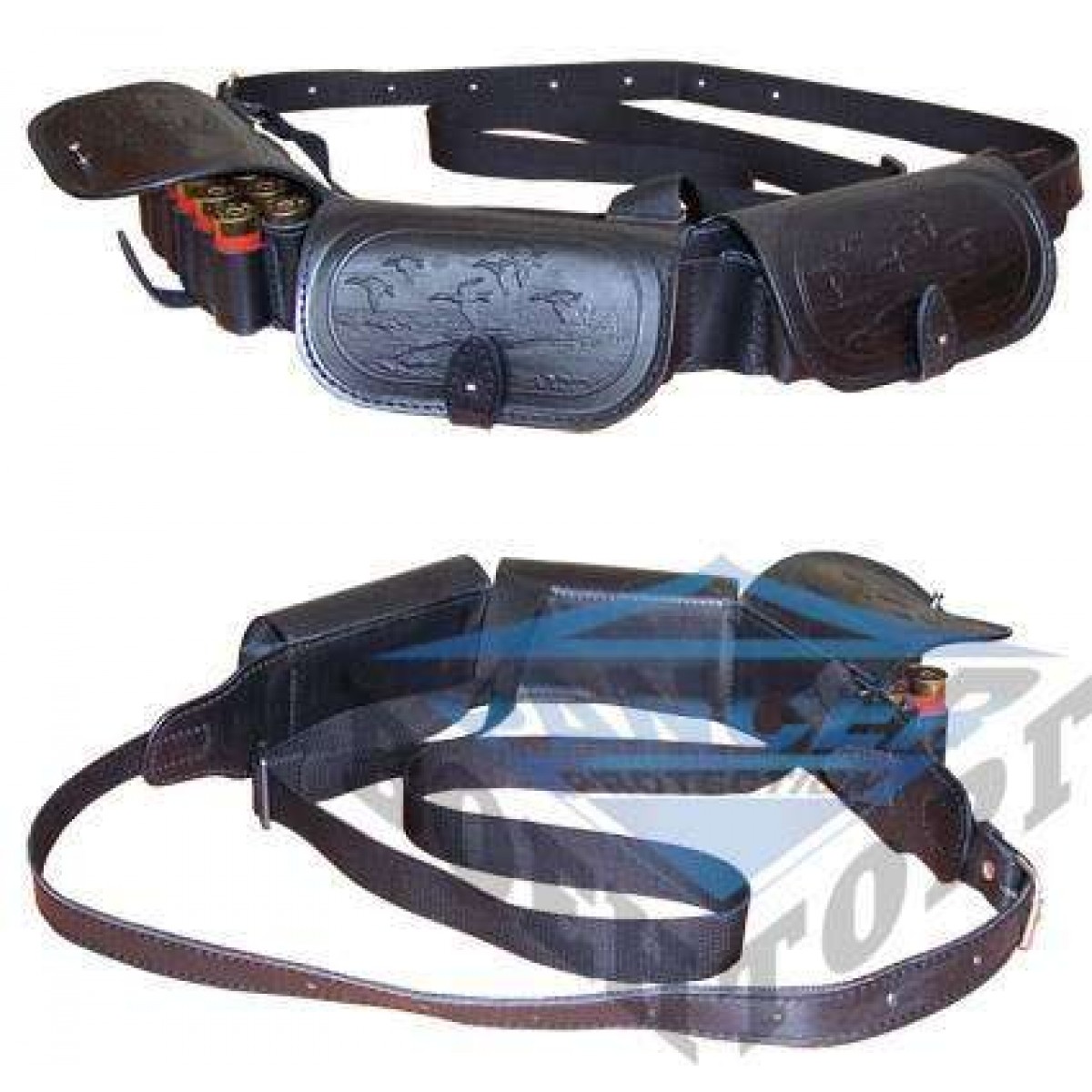 Описание Патронташ кожаный двухрядные с тиснением 12 к * 36 патр.