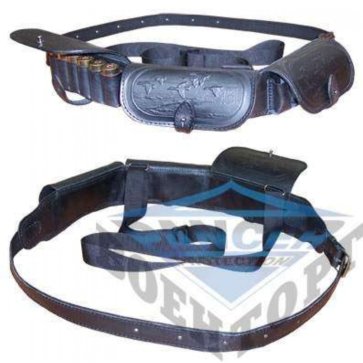 Описание Патронташ кожаный однорядный с тиснением 12 к * 18 патр.