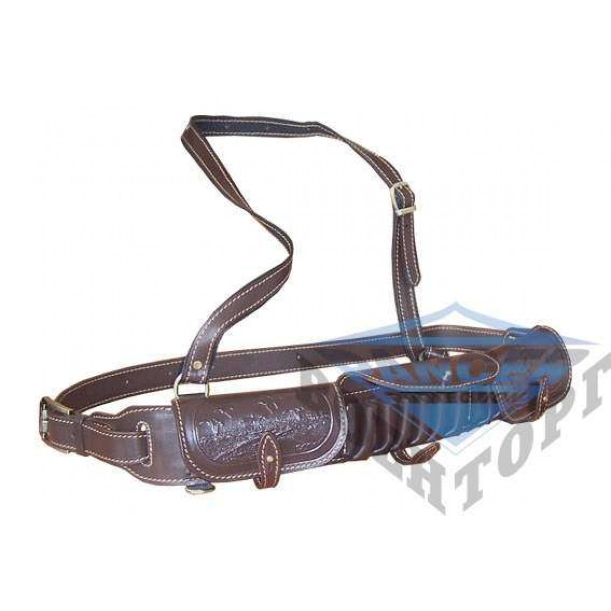 Патронташ кожаный однорядный с тиснением 12 к * 18 патр. Подарочный