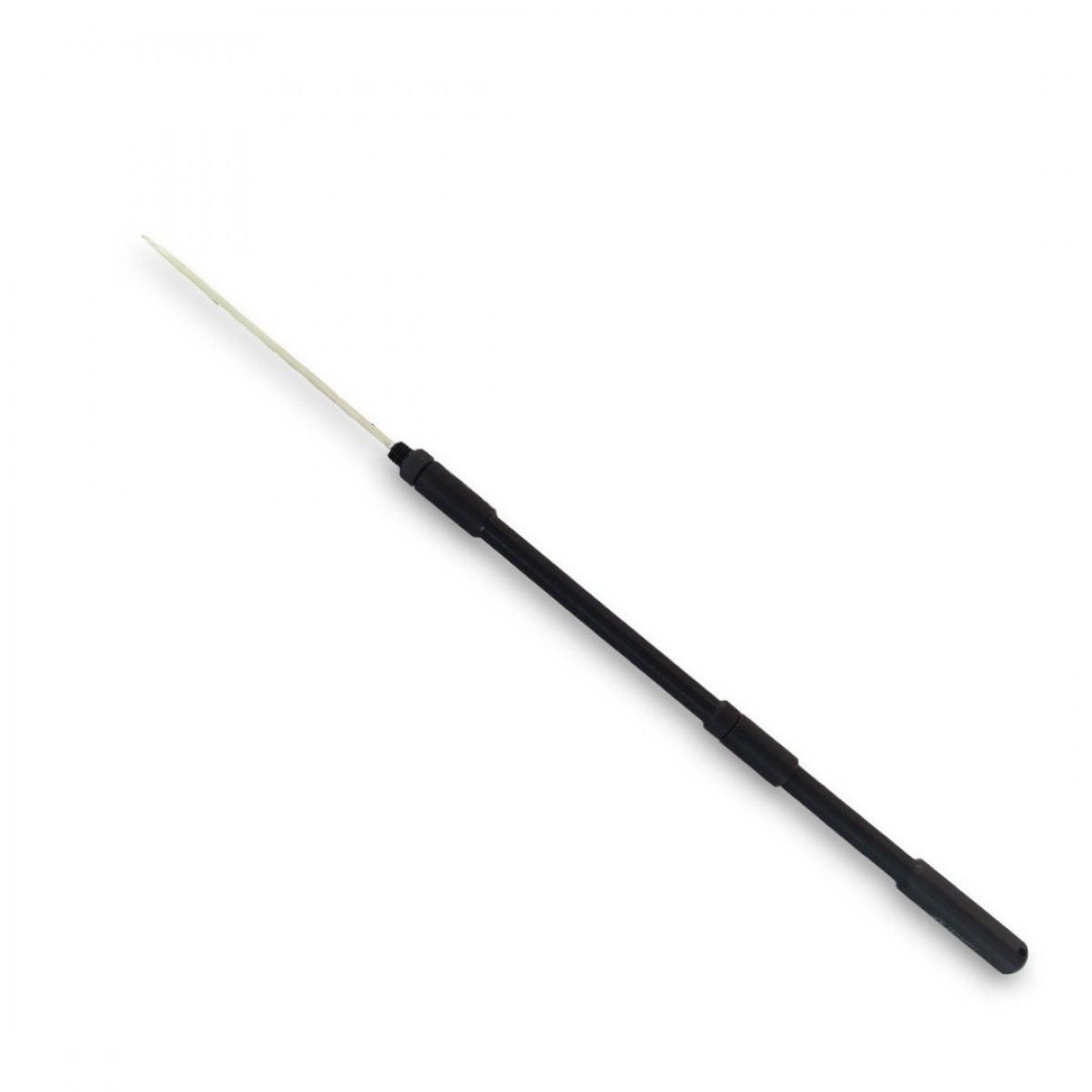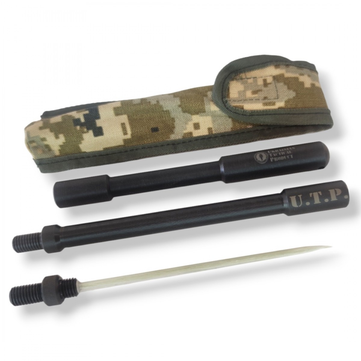 Щуп сделан из капралона. Жало щупа изготовлено из композитного стекловолокна. Щуп состоит из 3 частей - рукояти, жала и удлинителя. Жало щупа прячется в середину. Толщина жала 4 мм. Толщина щупа 20мм. Длина в собранном состоянии составляет 220мм. В разложенном 560мм. Вес 100г