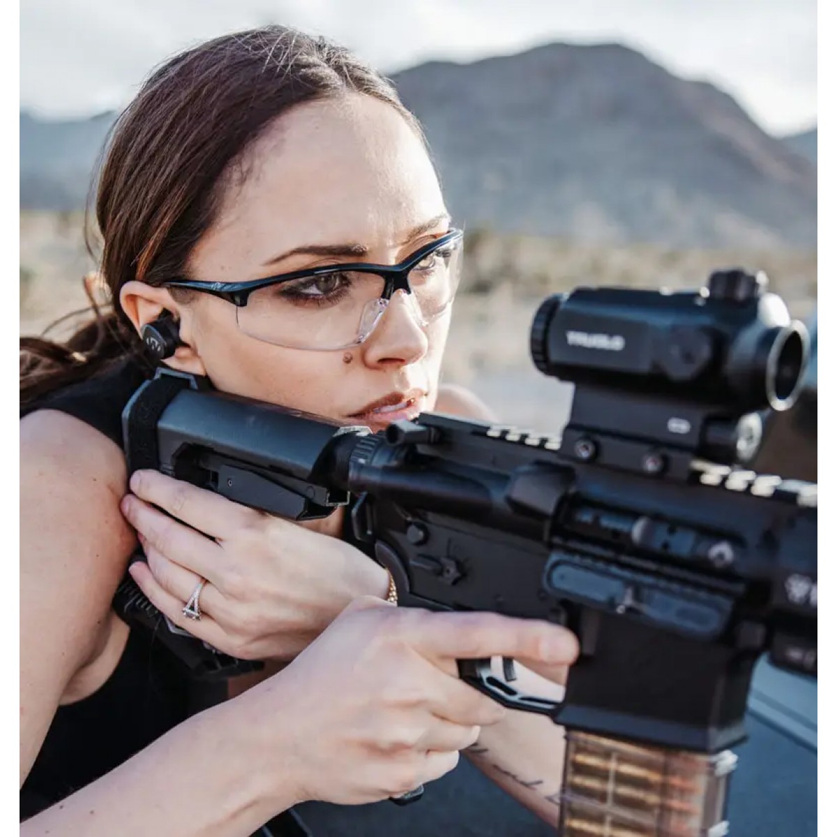 Walker’s Ikon Tanker – удобные стрелковые очки для защиты глаз на стрельбище. Модель выпускается в матовой черной прорезиненной оправе с линзами разных цветов: прозрачный, желтый, затемненный или розовый. Гибкие дужки оправы изготовлены из материала TPR, объединяющего в себе свойства резины и пластика. Носовые упоры выполнены из вспененного материала EVA. Очки сертифицированы в соответствии со стандартами: ANSI Z87.1-2010, MCEPS GL-PD 10-12. В комплект входит микрофибровая салфетка и чехол для переноски и хранения очков.