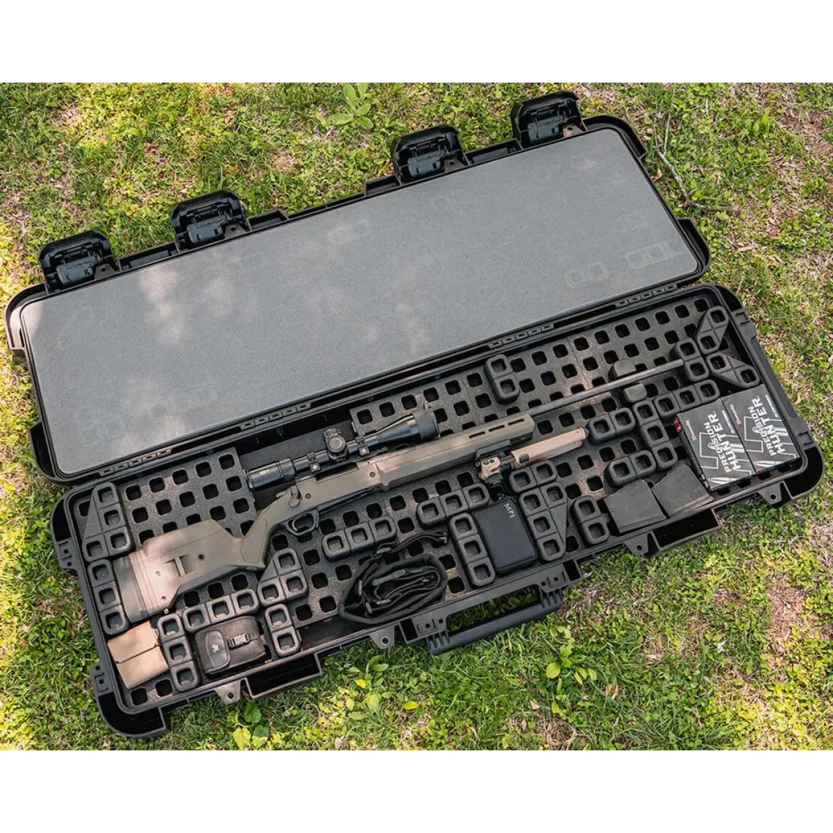 Модель R44, созданная на основе уникального настраиваемого органайзера DAKA GRID, предназначена для хранения винтовок средней длины и снаряжения. В нем удобно размещается одна или несколько винтовок, а также большинство дополнительного снаряжения, необходимого для выезда на стрельбище. DAKA GRID состоит из отдельных панелей из вспененного полипропилена (EPP), центральных панелей и блоков DAKA, которые надежно соединяются друг с другом, создавая усовершенствованную систему, позволяющую эффективно разложить снаряжение. Блоки DAKA легко вдавливаются в панели GRID и так же легко снимаются и устанавливаются на место, чтобы соответствовать особенностям переносимого груза. В отличие от традиционных пенопластовых вставок, DAKA GRID не удерживает влагу и грязь. Он легче, его можно бесконечно настраивать, и он значительно прочнее традиционного пенопласта, что обеспечивает значительно лучшую организацию и защиту хранящегося в нем снаряжения.