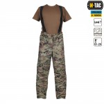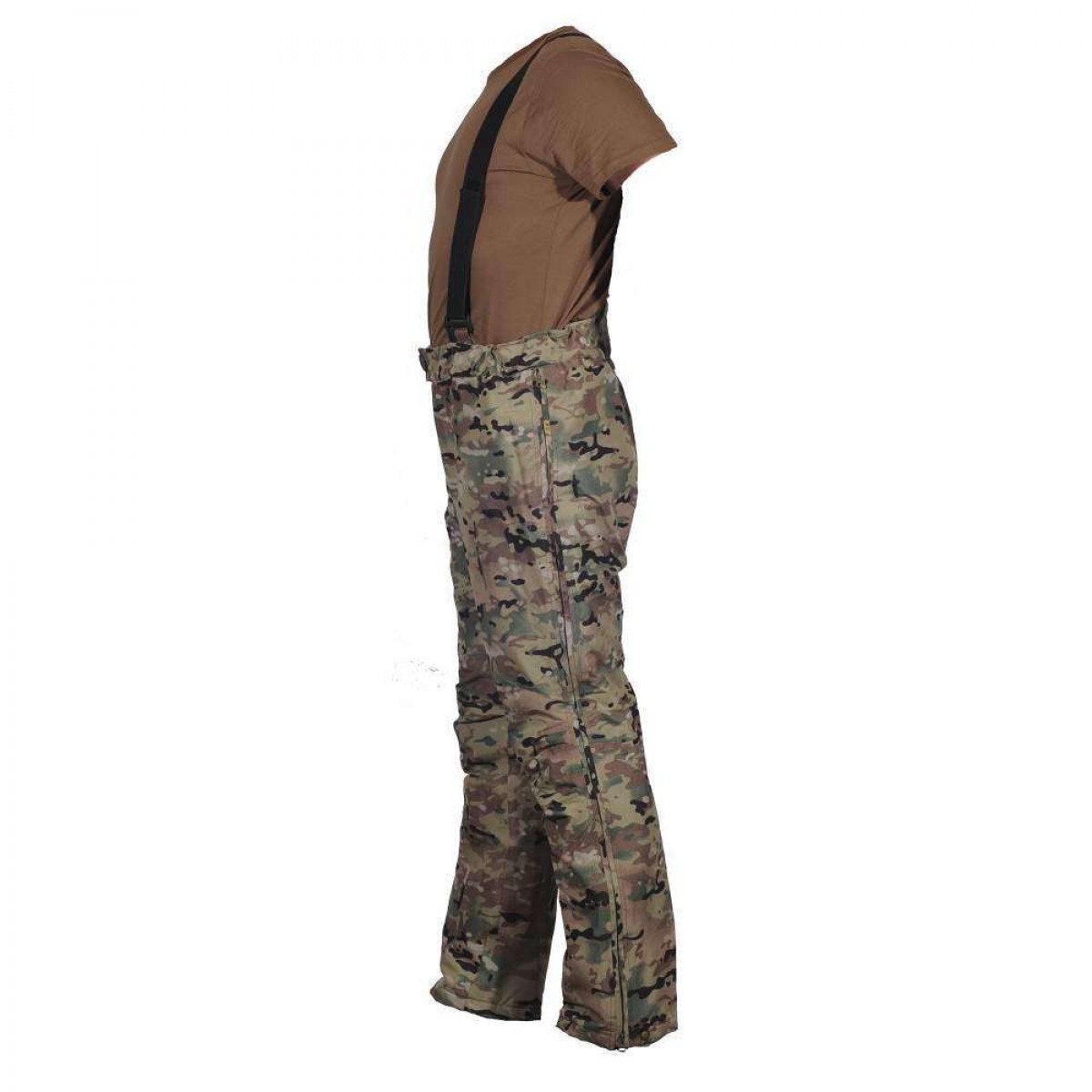 Брюки оборудованы подтяжками, которые регулируются на велкро, через скользящую пряжку.