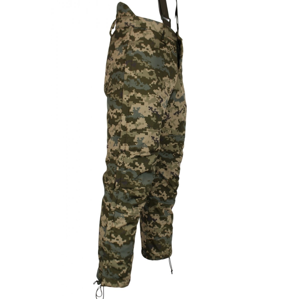 Брюки Man Tac зимние с подтяжками Пиксель — утеплённые тактические брюки для эксплуатации в холодный период, рассчитанные на длительное пребывание в полевых условиях. Конструкция ориентирована на сохранение тепла, защиту от ветра и удобство при активных движениях. По опыту пользователей подобного снаряжения, наличие подтяжек и утеплённого кроя повышает комфорт при длительном ношении в зимних условиях.