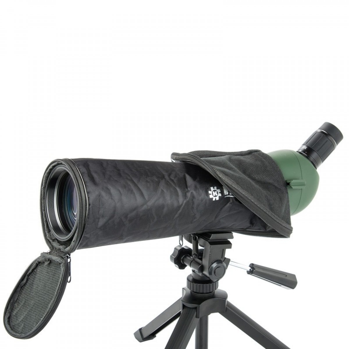 Многослойное просветляющие покрытие KONUSPOT-80 20-60x80 делает картинку яркой и контрастной. Окуляр с переменным фокусным расстоянием дает возможность изменять увеличения от 20Х до 60Х, расположен под углом 45°. Подзорная труба KONUSPOT-80 имеет антибликовую бленду, в комплекте идет фотоадаптер.